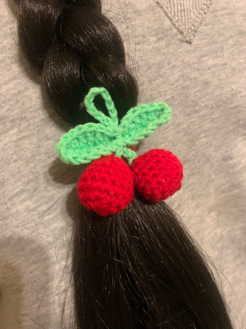Яркая резиночка для волос "Вишенка". Хорошо держит волосы и придает яркий акцент.